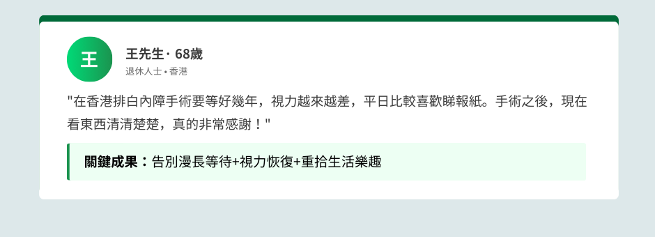 完整見證他們從白內障困擾到清晰視界